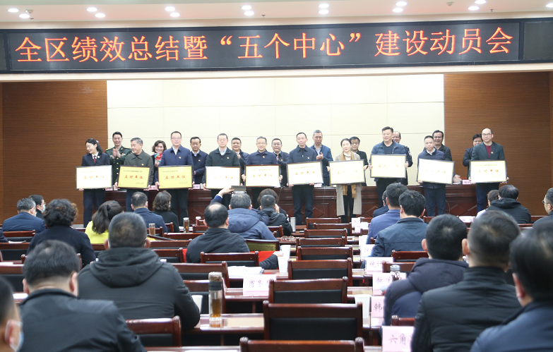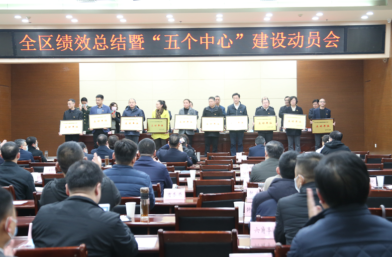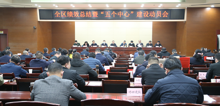 3月5日下午,硚口区召开全区绩效总结暨“五个中心”建设动员会。会议表彰了2020年度全区绩效管理综合考评立功单位、先进单位,部署了硚口区助力打造“五个中心”、建设现代化大武汉的相关工作。区委书记刘丹平与会并讲话,区长苏海峰主持会议,区委、区人大常委会、区政府、区政协领导班子成员,区法院院长、区检察院检察长,区公安分局政委,各街道、各单位、各部门党政主要负责人参加会议。