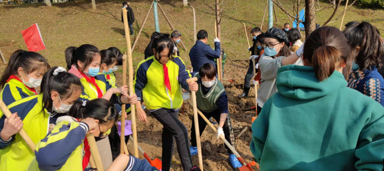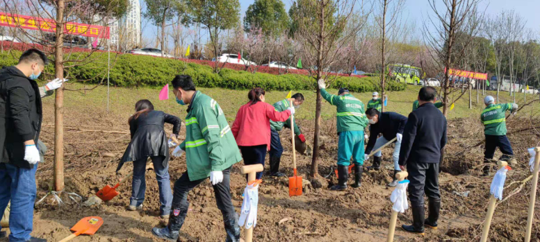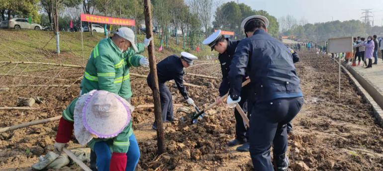 响应“绿色征集令”,大家或挥锹挖坑、或扶正苗木、或培土浇灌,为美丽家园再添一抹绿色。