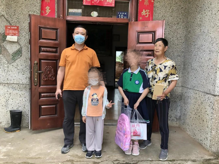 5月31日上午,硚口区市场监督管理局党政办干部李蒙龙与驻村工作队来到黄陂区金银岗村贫困户沈先生家走访慰问,为其孩子送来铅笔、书包等文具和“六一”节日祝福。