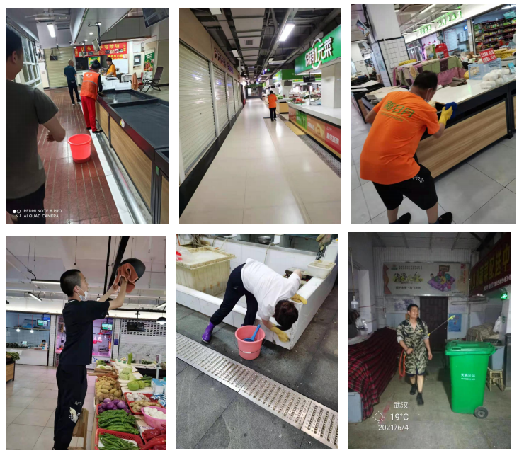 区市场监管局组织开展农贸市场环境卫生清理整治,全区农贸市场进行搬家式大扫除,市场内所有摊位、店铺全体行动,打扫、冲洗地面、墙面、下水道,重点清理水产区、垃圾站等处,并开展环境消杀。