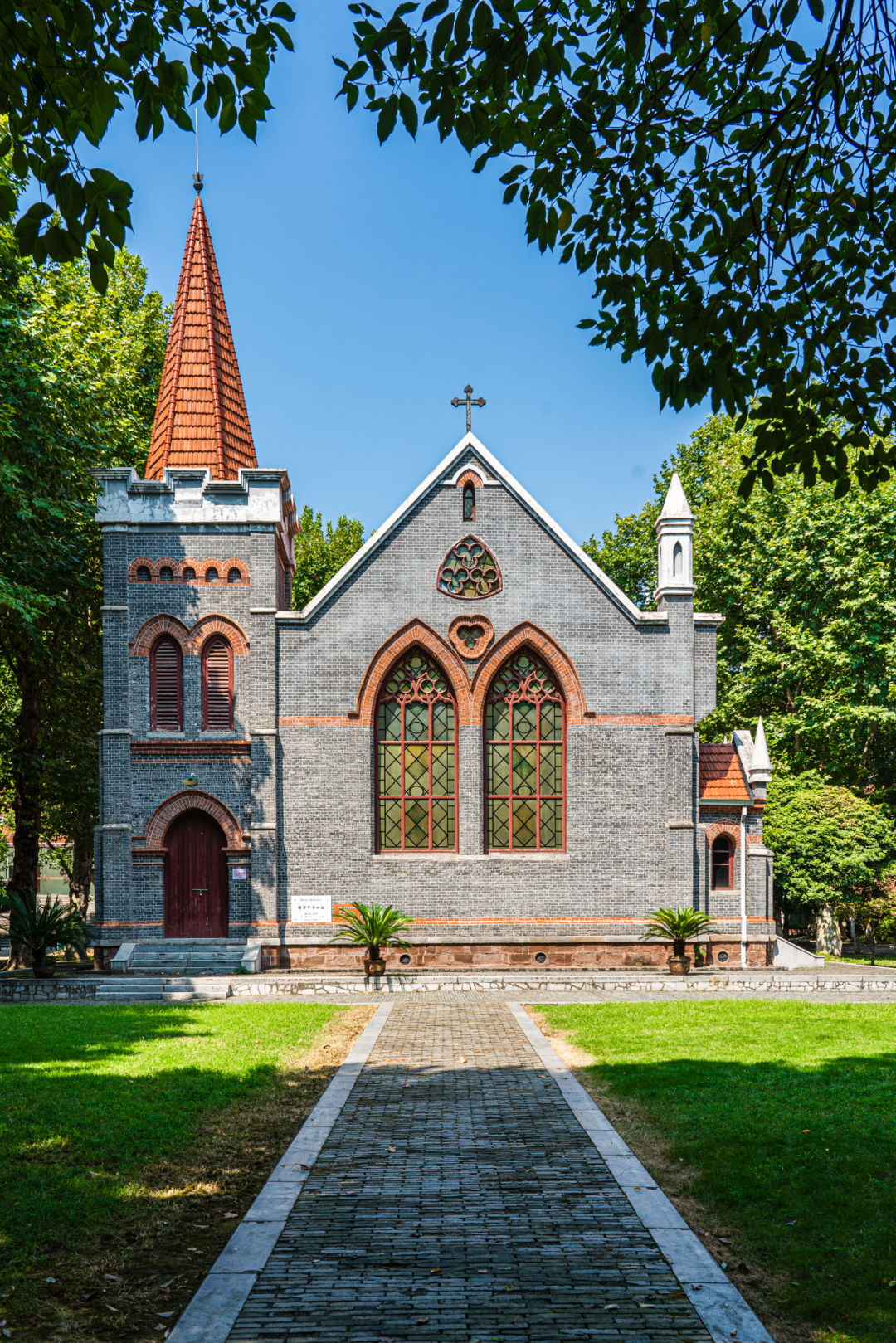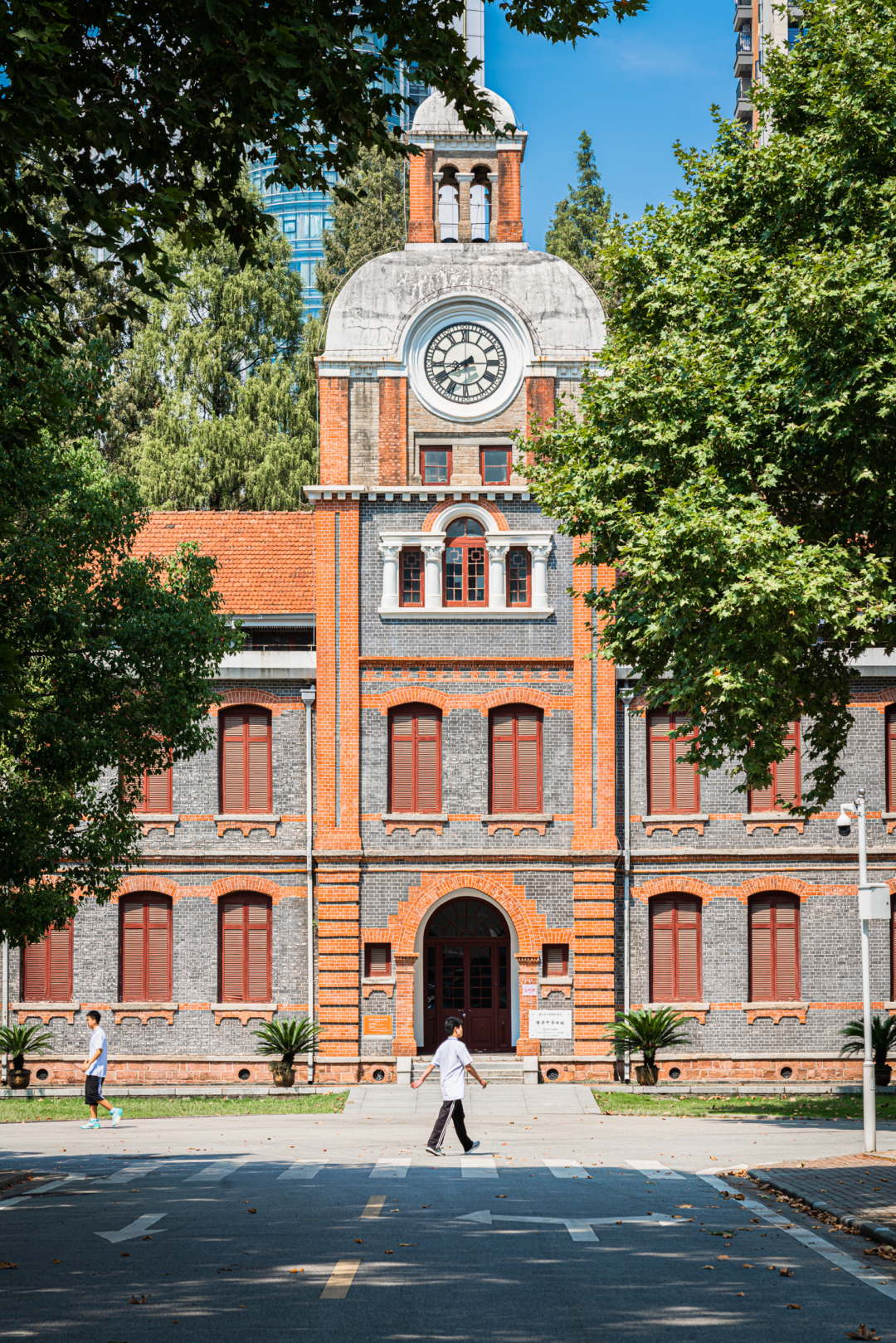 伫立在绿荫间的老钟楼在阳光下格外醒目,这栋石墙红瓦的西式建筑便是四中的地标。它曾是校园里的主教学楼,学生们伴随着钟声上下课,如今这座钟楼已经被改造成了校史陈列馆,不轻易对外开放。
