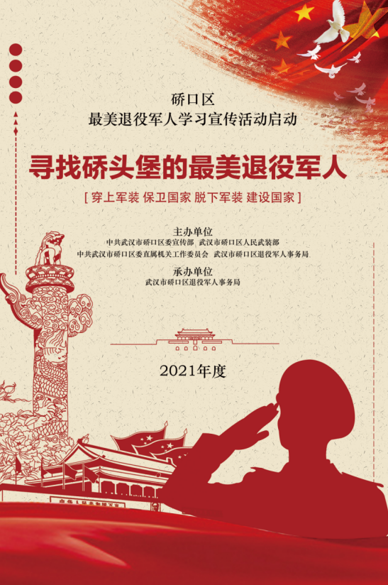 根据各街道、各单位推选情况,本次活动共评选2021年度“硚口最美退役军人”10名