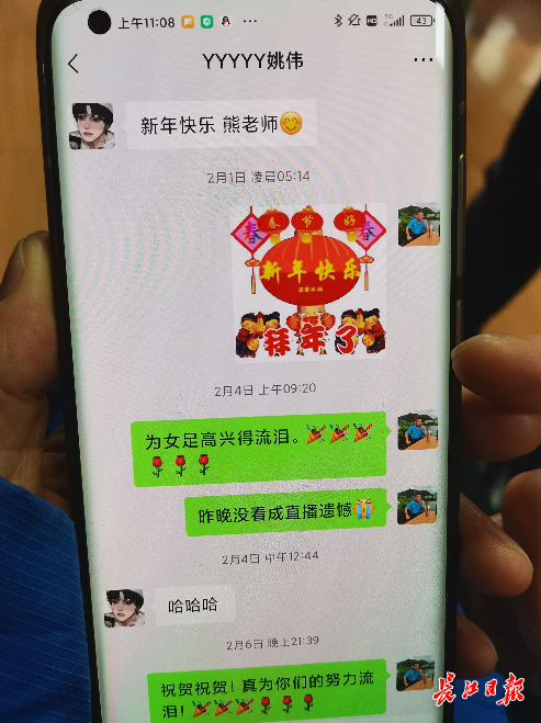 △今年春节期间,姚伟与熊四弟通过微信交流,师徒俩情谊深厚。