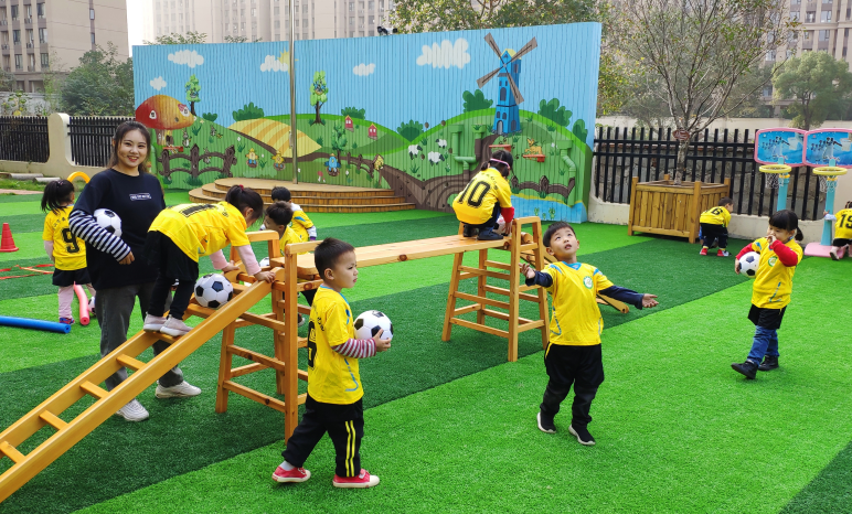 幼儿园积极组织幼儿参与各种足球比赛活动,通过比赛让幼儿了解比赛规则,尝试使用平时学到的技能技巧,体会到足球运动的快乐以及足球精神,逐渐发展幼儿乐观进取、团结协作等良好品质。同时,积极组织教师参加足球培训活动,促使校园足球常规化、游戏化,从而更好引导幼儿在足球活动获得快乐和健康成长。