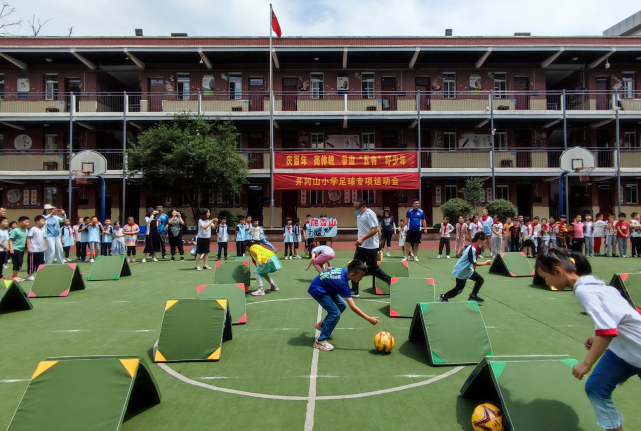 学校充分利用体育教师专业优势,积极开发足球校本课程,配齐教学、训练器材,实施适合学生年龄特点的足球教学和课外活动,引导学生熟悉规则、提高球技、增强体质、培养品德,足球课已成为学生们最喜爱的课程之一。