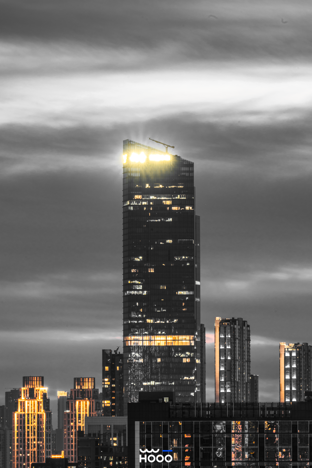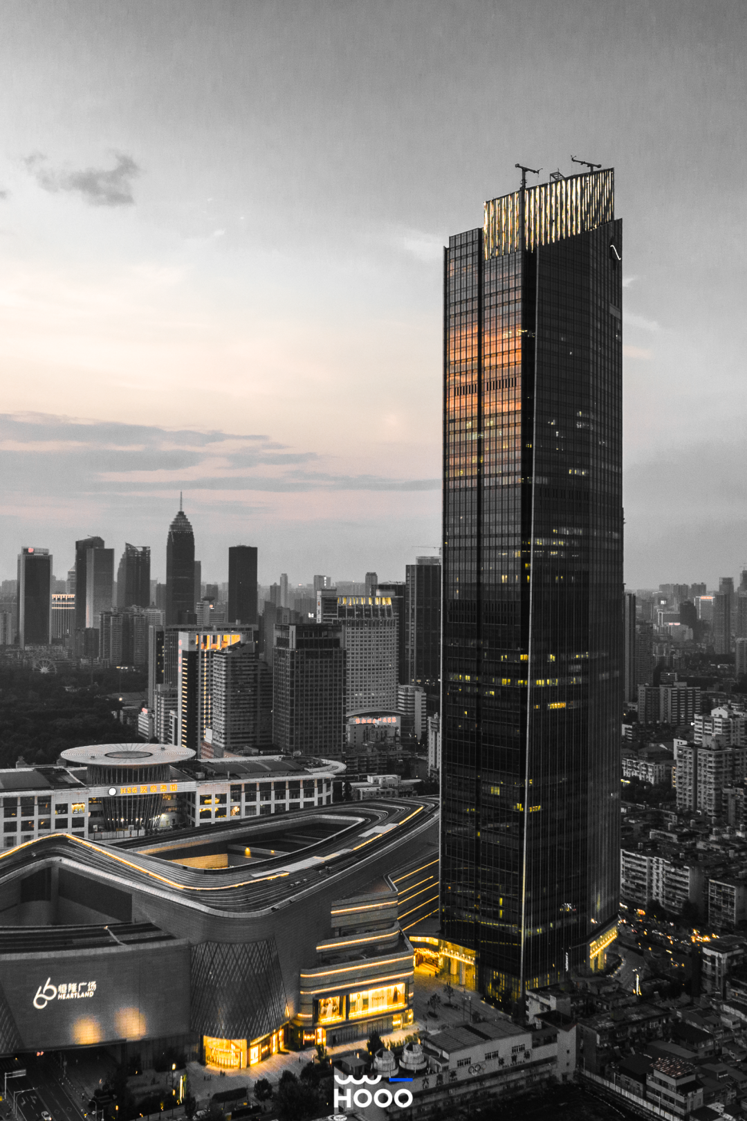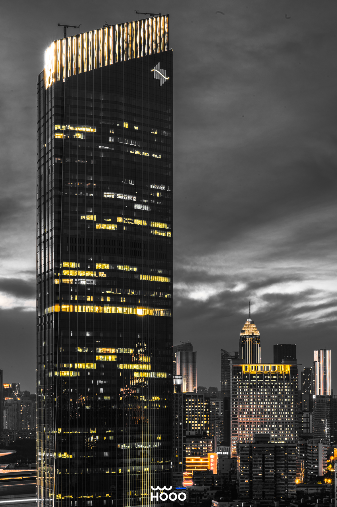 恒隆广场以世界级建筑联动武汉新生代商圈,当夜晚的灯光打在恒隆的外立面,黑与金,气场十足。
