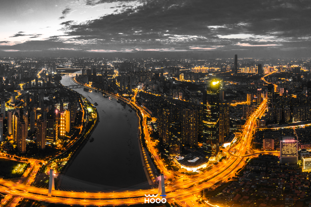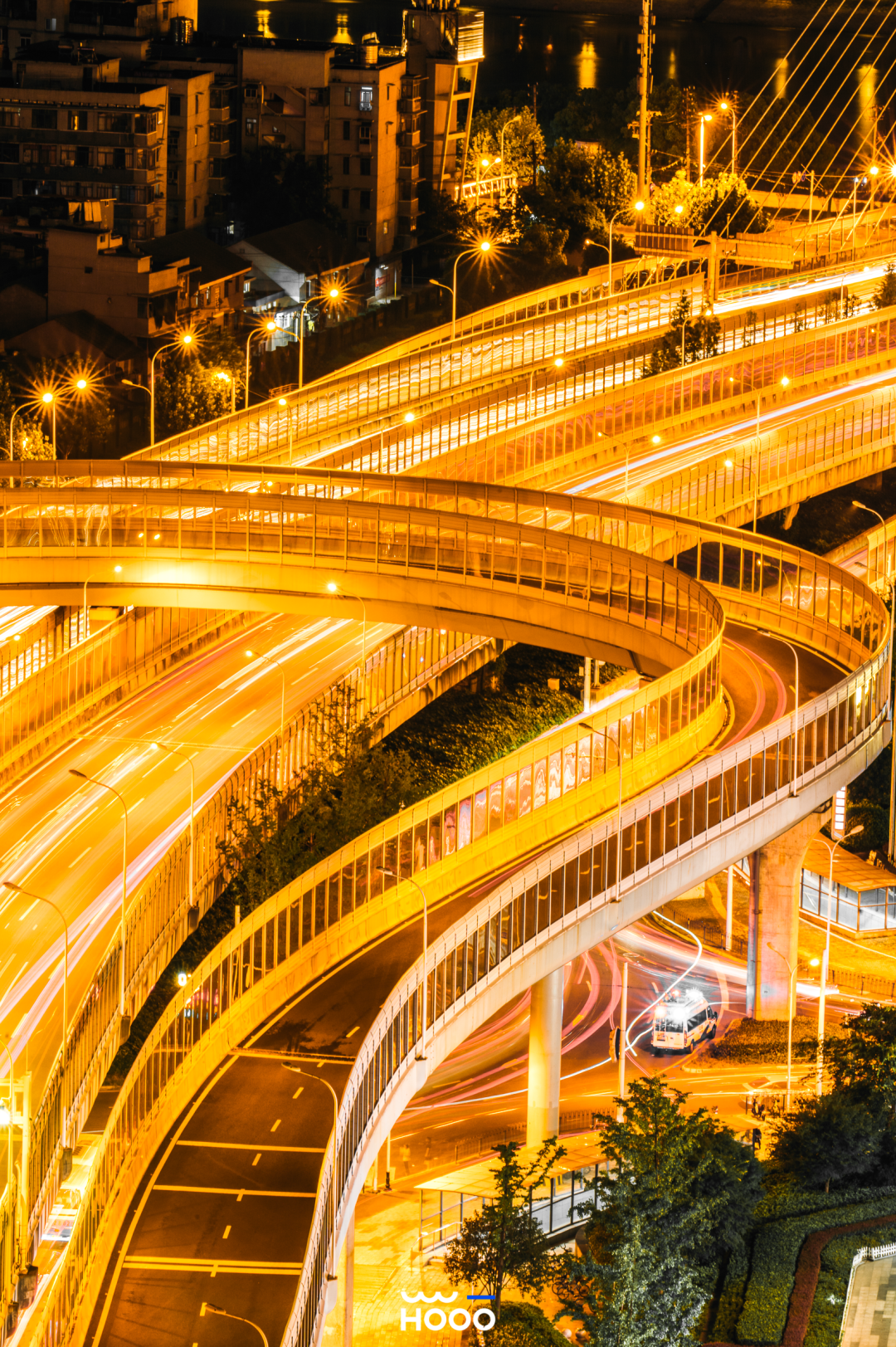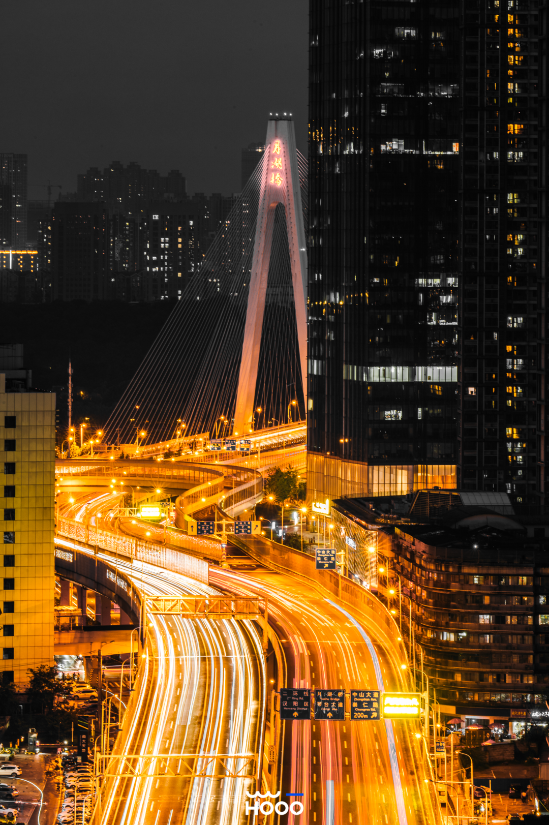 硚口的夜熠熠生辉,流光溢彩的金属质感和色泽,机械感十足的线条,一种“纸醉金迷”、梦幻飘渺的氛围感油然而生。