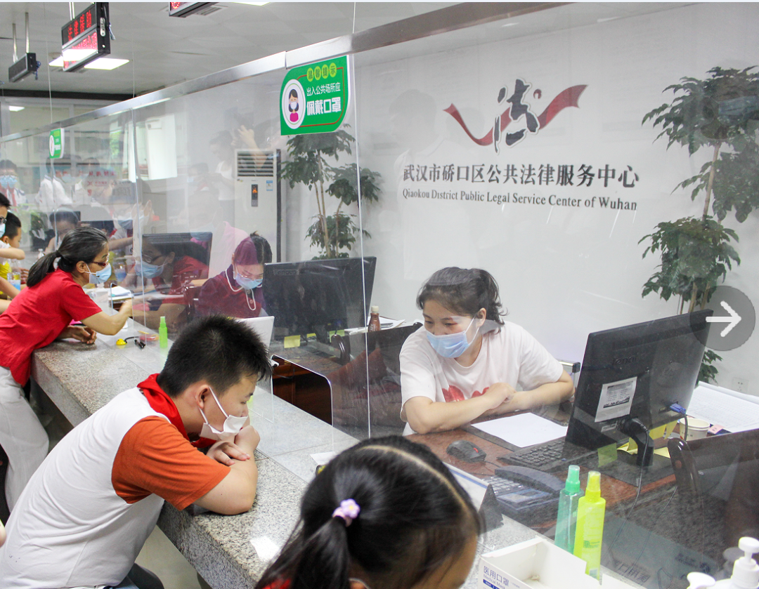随后,组织带领参观司法行政机关。在硚口区公共法律服务中心,孩子们近距离观看了法律援助申请的办理过程,并向值班律师提出疑问和咨询。在荣誉室和图书馆,孩子们认真聆听司法行政工作发展历程,触摸着一块块奖牌、注视着一张张展板、翻阅着一本本图书,纯真的眼里充满着好奇和感叹,在心里默默种下了法治的种子。