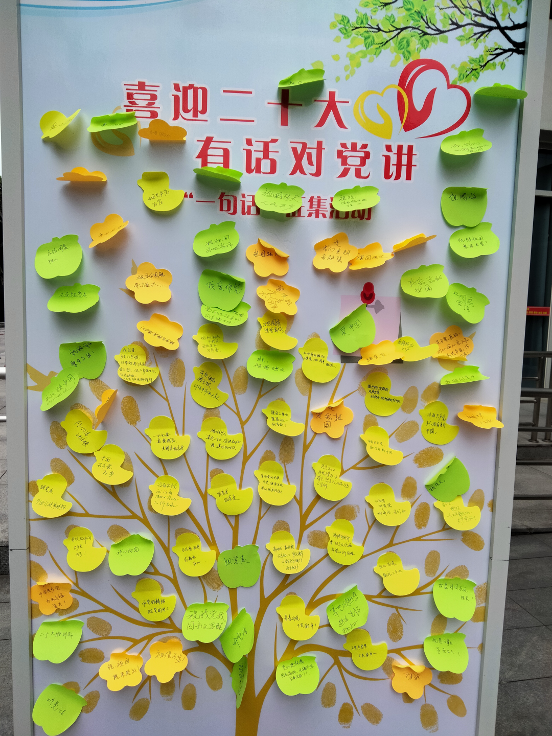 人们通过参加“喜迎二十大,有话对党说”活动,在承载愿望的心愿墙上,用笔尖传递着对党的一腔热诚。一张张别致的卡片,一句句暖心的话语,一份份美好的祝福,抒发听党话、感党恩、跟党走的真挚情感,激励党员干部以最饱满的精神、最昂扬的姿态迎接二十大胜利召开。