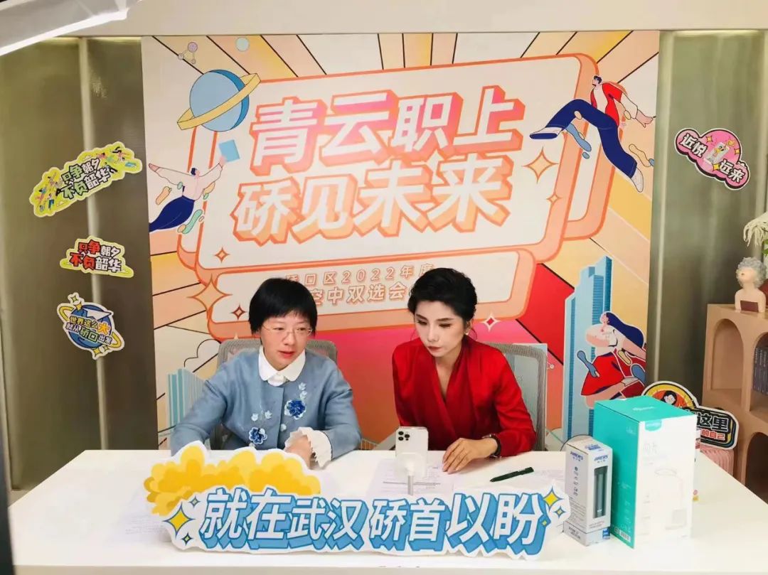 10月18日,硚口区委组织部、区人力资源局组织开展的“就在武汉·硚首以盼”—2022年秋季空中双选会暨直播带岗活动,在线上招聘平台“青云荟”上成功举办,“云”招聘助力企业与大学生“见上面”、“牵上手”。