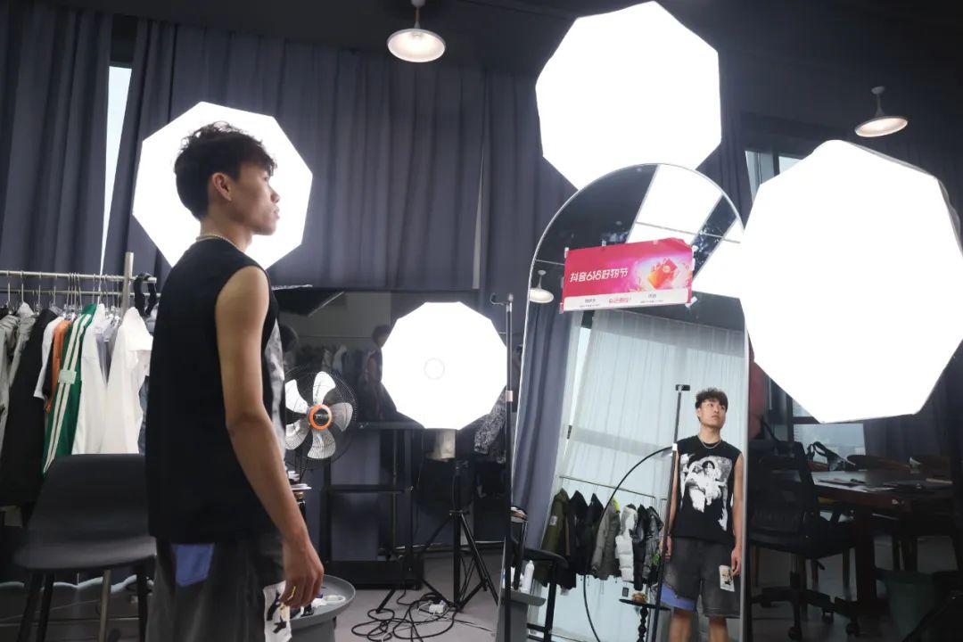 位于汉正街的汉派服装直播基地品牌直播间。记者胡冬冬 摄