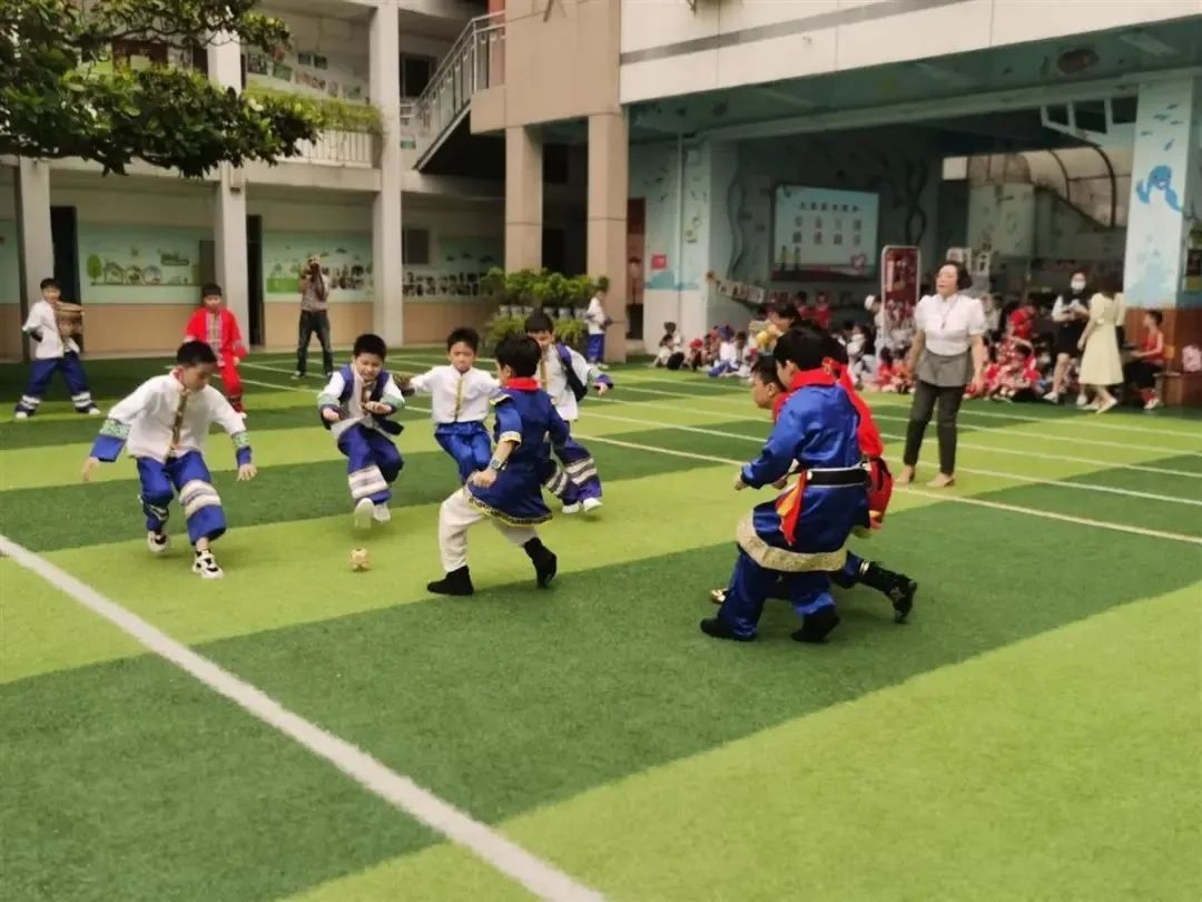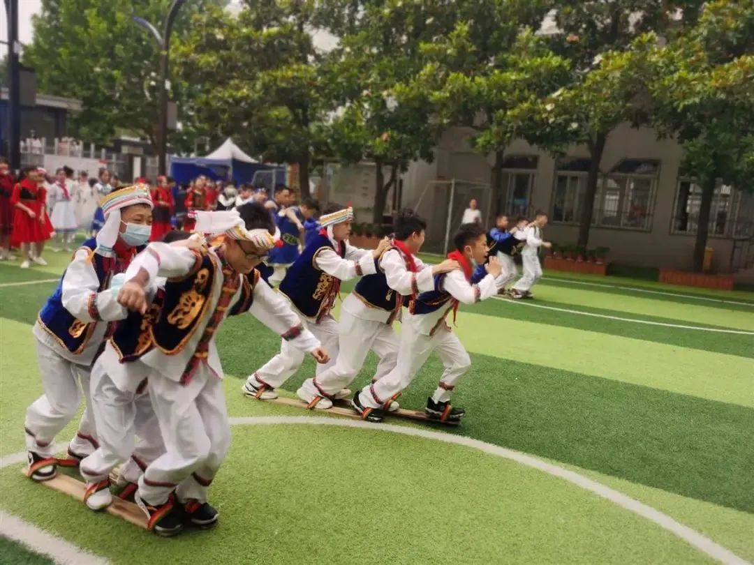 引进民族传统体育活动后,让个别感统失调、注意力难以集中的孩子也得到了锻炼,在三人板鞋项目中,一旦有人摔了跟头,便立刻有小伙伴上前,帮他快速站起来,学生在彼此配合中有了集体荣誉感。