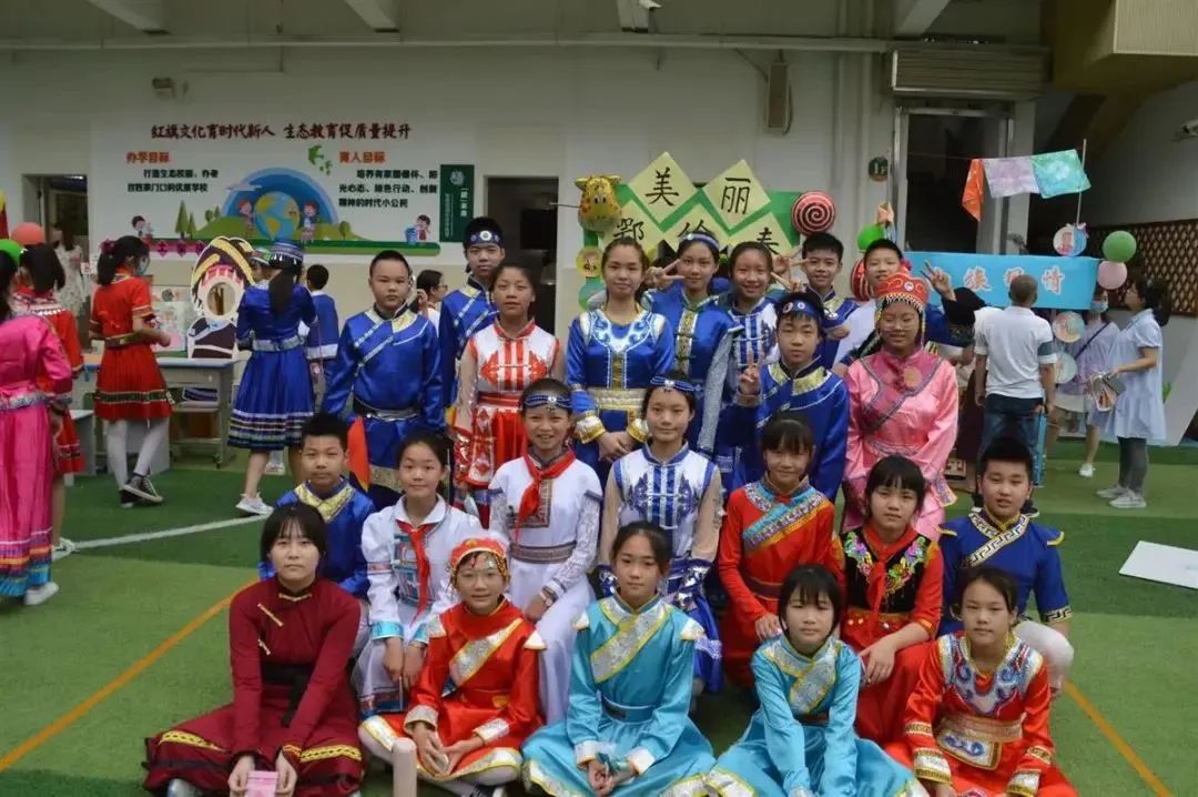 今年5月,学校精心组织了一场民族文化嘉年华活动:苗族、壮族、瑶族、白族、哈尼族……全校18个班,以班级为单位选定一个民族,在操场上的指定区域设计精美的文化体验区,每个学生都尽己所能展示民族文化和特色。有民族美食、有民族技艺、民族风情游戏,每个班还有小小讲解员,为游园的同学介绍民族特色,共享民族文化大餐。