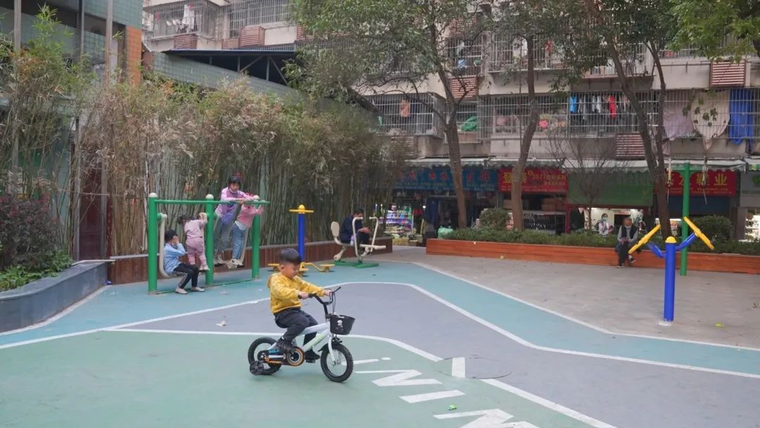 每逢周末,硚口区银丰富苑楼下的口袋公园里格外热闹,孩子们在彩色格子里做着游戏,老人们则在健身器材上活动筋骨。位于汉正街道石码社区的这个口袋公园,除方便本社区居民,还是周边五彩社区和永茂社区居民的休闲健身之所。