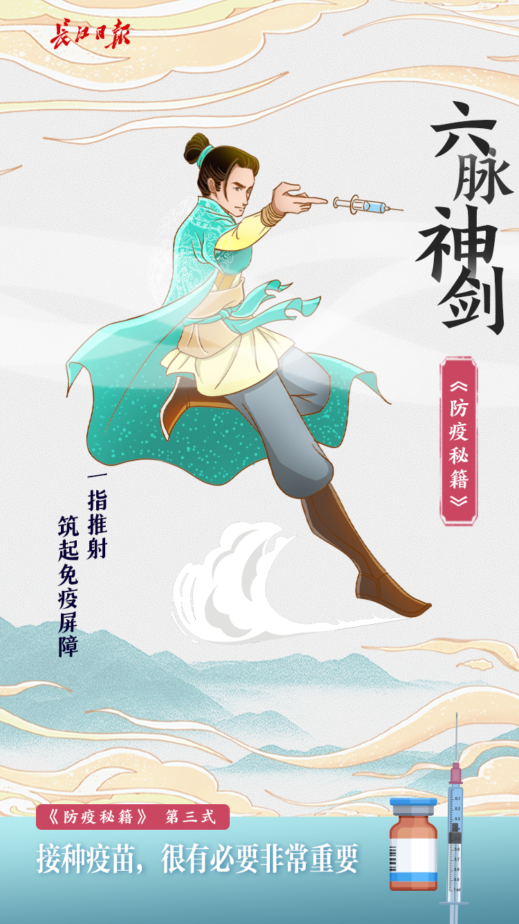 一指推射 筑起免疫屏障作为强大的防守武功在规定时间内及时接种三针疫苗最大程度抵抗新冠侵袭