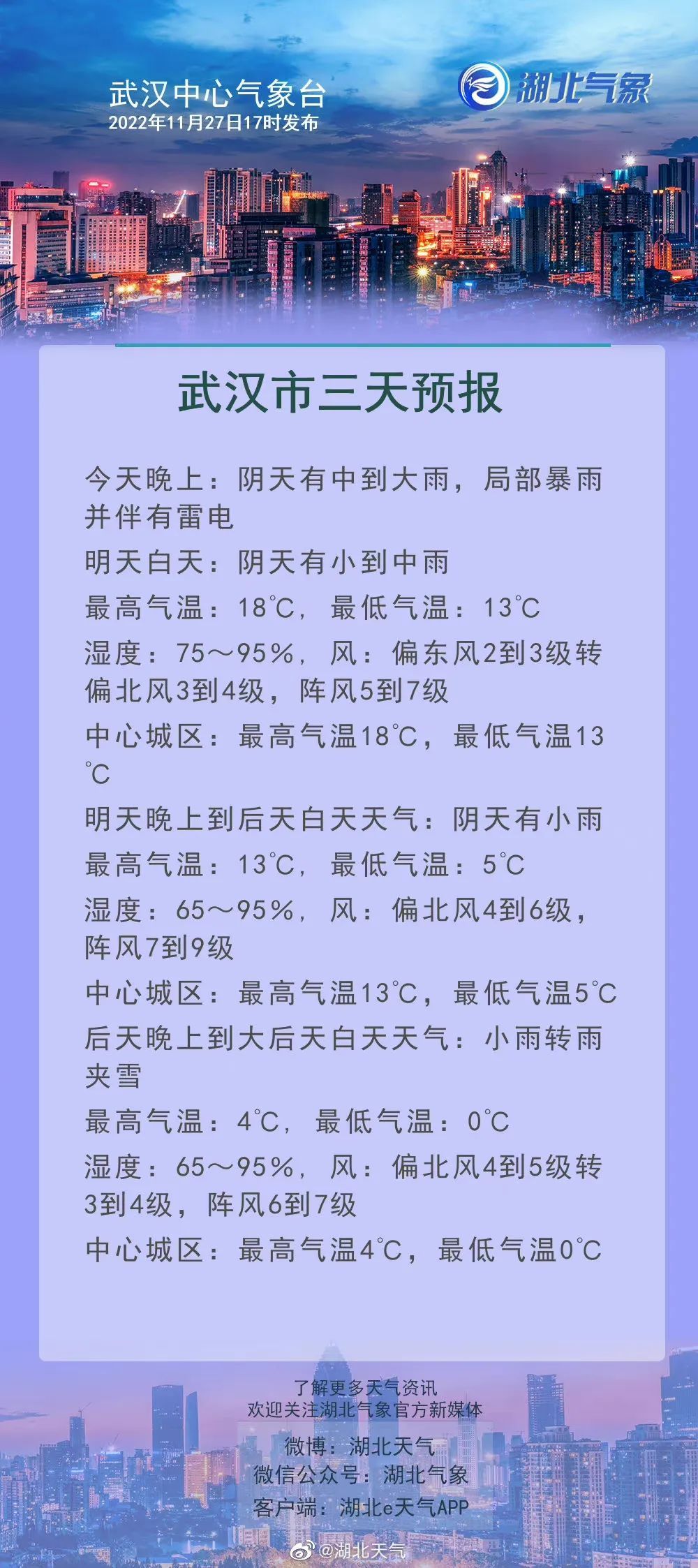 武汉市应急管理局已通过短信、微博、微信公众号、抖音等多种方式提醒广大市民:密切关注气象灾害预警信息,提高风险防范意识,及时停止露天活动和高空户外作业,谨慎出行,加强防护,确保自身安全。