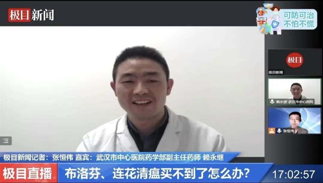12月15日,武汉市中心医院药学部副主任药师赖永继做客极目新闻“可防可治 不怕不慌”系列直播,为广大网友答疑解惑,极目新闻全平台共计50.6万网友观看了本场直播。