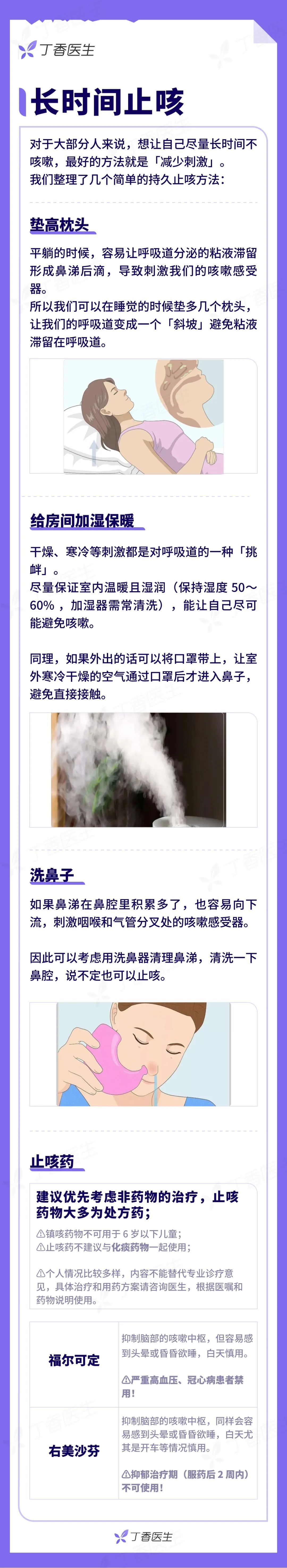 三、上呼吸道的修复有一个过程,很多外界环境、空气、刺激物对我们气道黏膜有损伤,它的敏感性会升高,也会导致咳嗽。这个时候,要想办法找到咳嗽的原因,并进行化痰止咳治疗,可以根据个人具体症状,适当用药祛痰。