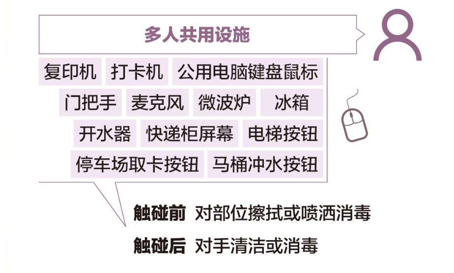 在办公场所,多人共用设施和人员密集区域需格外注意。