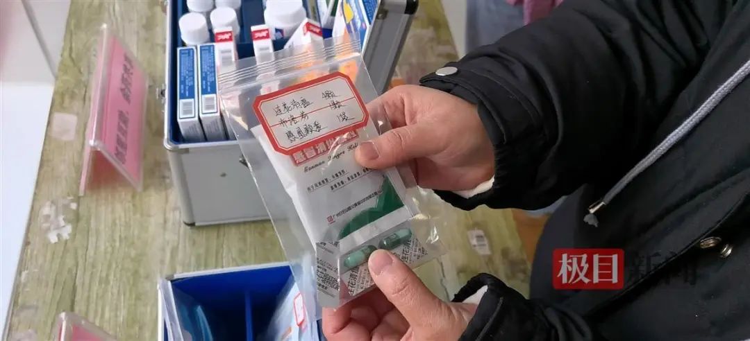 共享药箱里的部分药品,被社区工作人员分装成了一袋袋“防疫药包”,每袋药包内装有4粒连花清瘟胶囊、1粒布洛芬胶囊和1粒感冒药片。