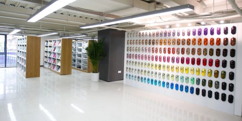 继续往里走,里面的展示更是别有洞天——CMFT创新研究中心。这里是庞大的产业链服务及供应链优势资源,海纳各行业优质新材料、新工艺、流行色彩搭配资源,汇聚材质研究技术人员、及科研机构,整合创新材料资源及材料研究教材,为企业和用户提供技术交流平台服务,同时提供材料选型、用料解决方案、技术支持及咨询服务。