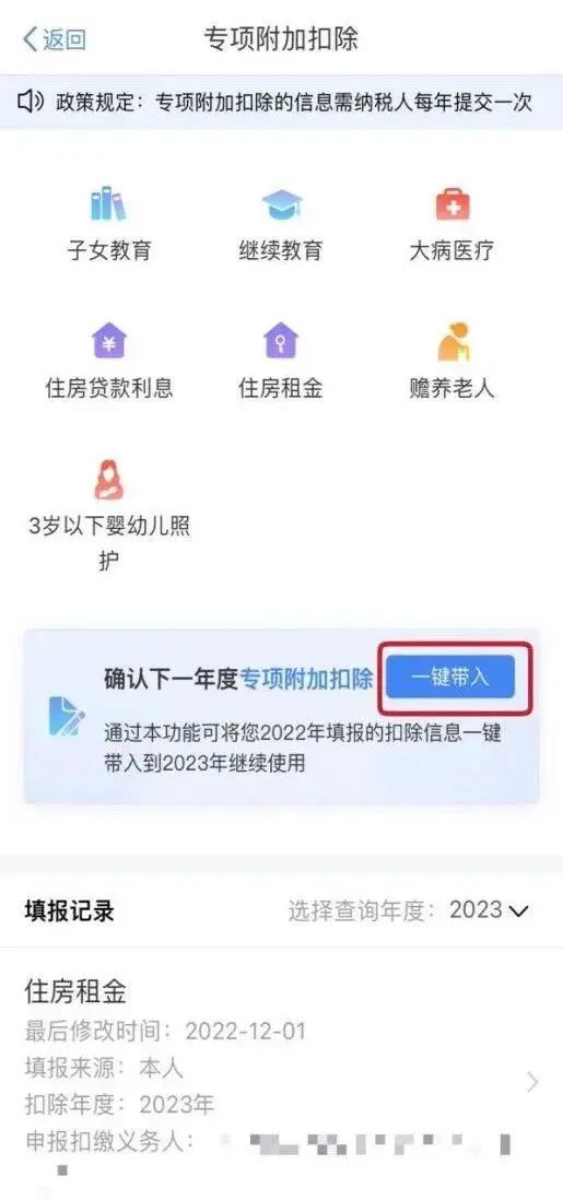 进入专项附加扣除信息界面后,点击“一键带入”。