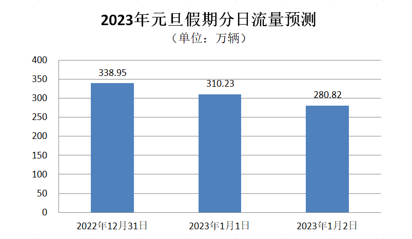 预计节日期间,普通国省干线公路各日流量总体处于平稳运行态势,日均断面流量约310万辆,较2022年元旦日均流量下降约9%。
