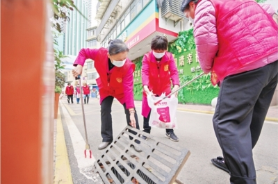 ▲ 荣东社区“荣家美”环境护卫队志愿者开展清洁家园活动