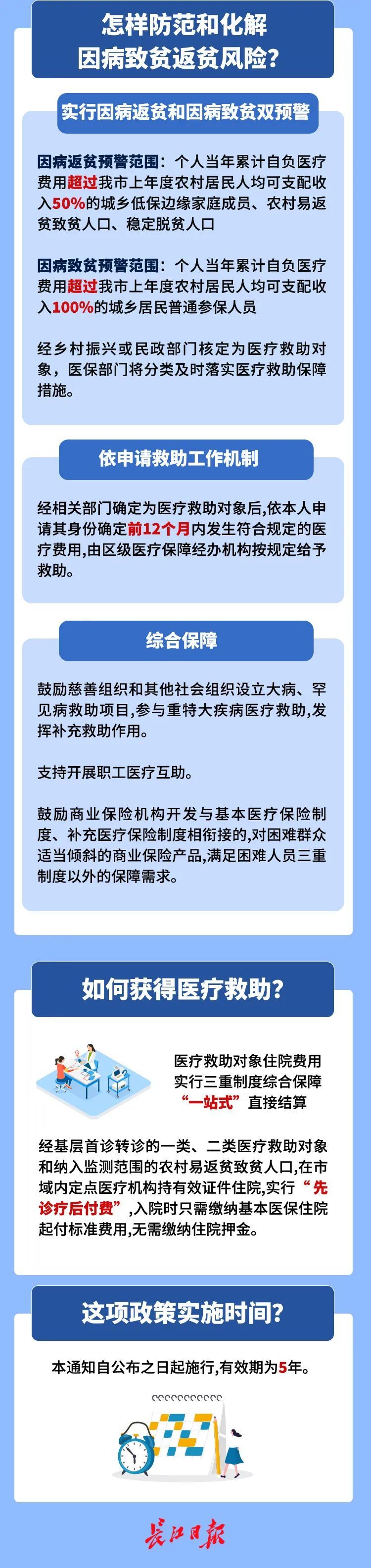 即日起实施!武汉医保新政发布 2023-01-12 16:40 武汉发布 0 近日 武汉市人民政府印发 《健全重特大疾病医疗保险 和救助制度工作的通知》 根据《通知》 四类人员可获得医疗救助 有哪些具体措施 一起来看看 ▼