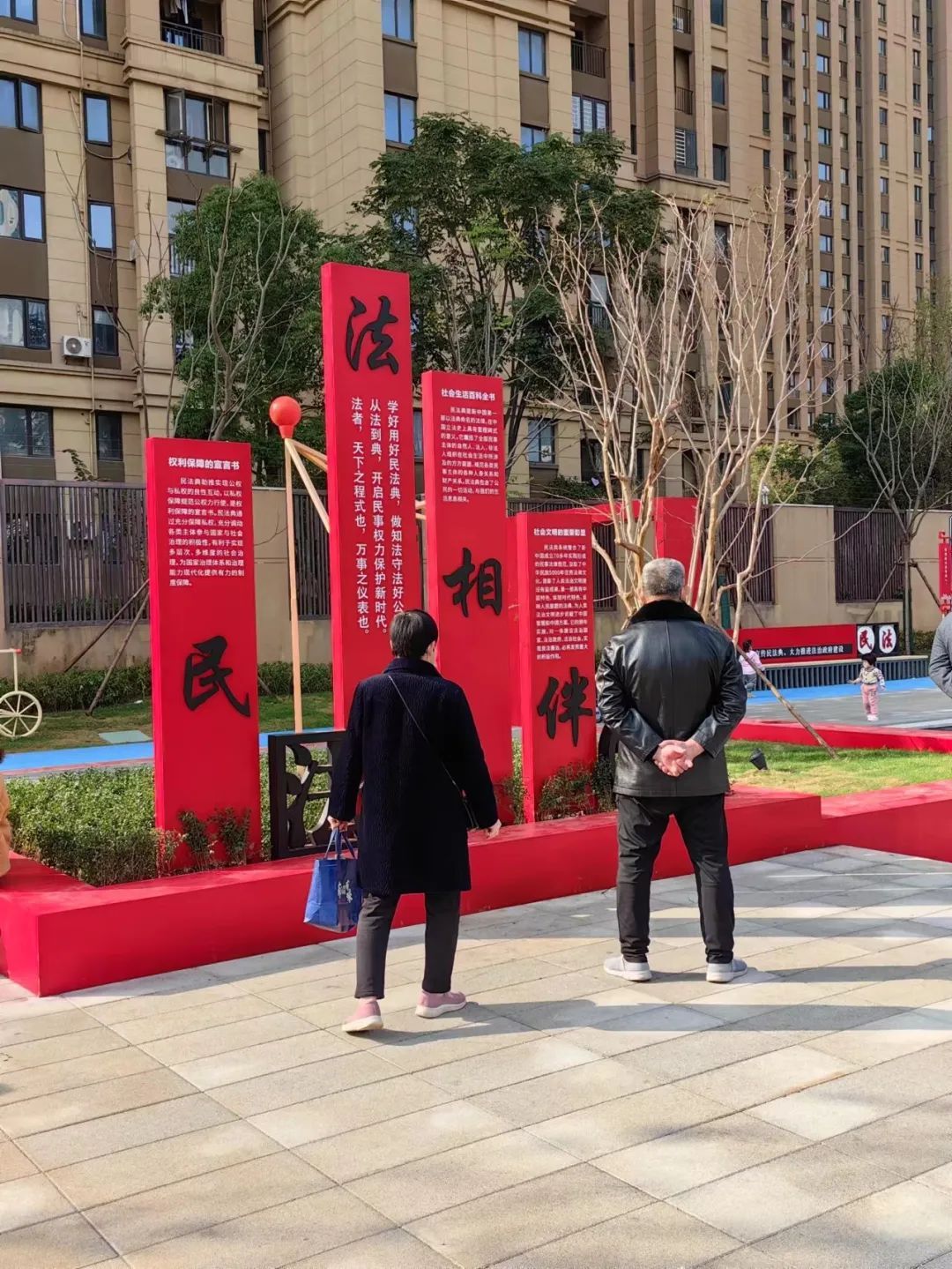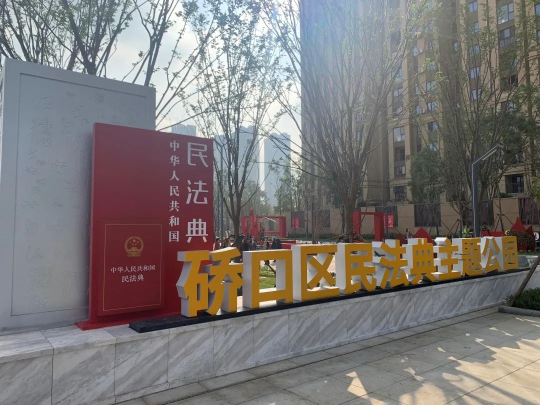 硚口区园林局与司法局联手打造的武汉市首座以民法典为主题的口袋公园“民法典主题公园”,坐落在南泥湾大道与古乐路交会处,该公园也是武汉市2023年建成的首座法治为主题的口袋公园。目前,公园已经建成投入使用。