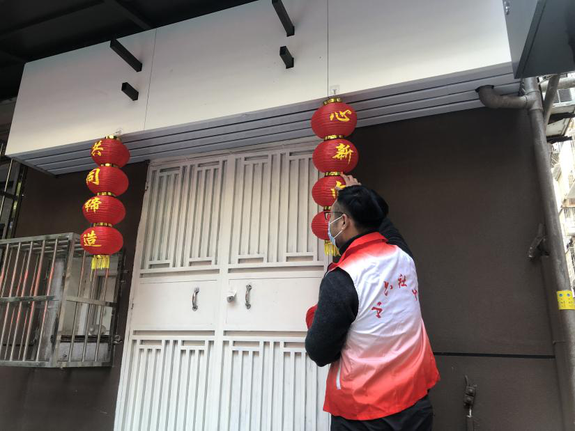 新春佳节,社区工作人员们到辖区内商户门前,挂灯笼,贴窗花,送祝福。把浓浓的年味儿和新春的祝福送给商户们,愿新的一年生意兴隆,财源广进。