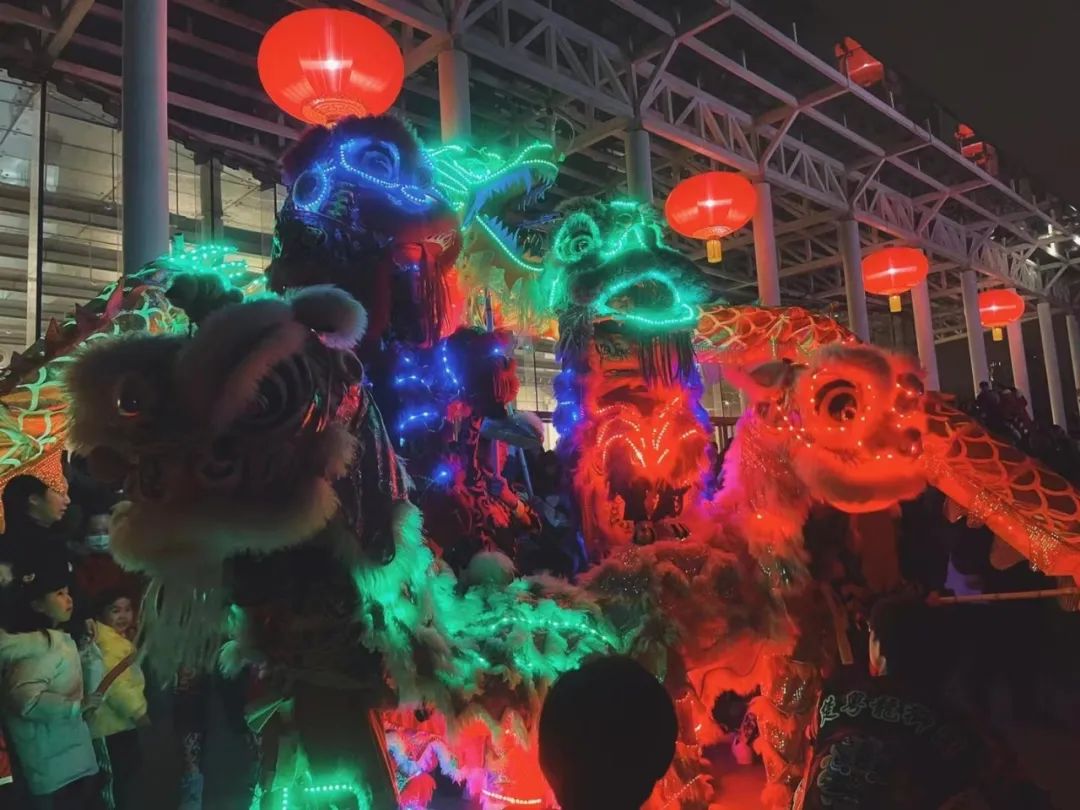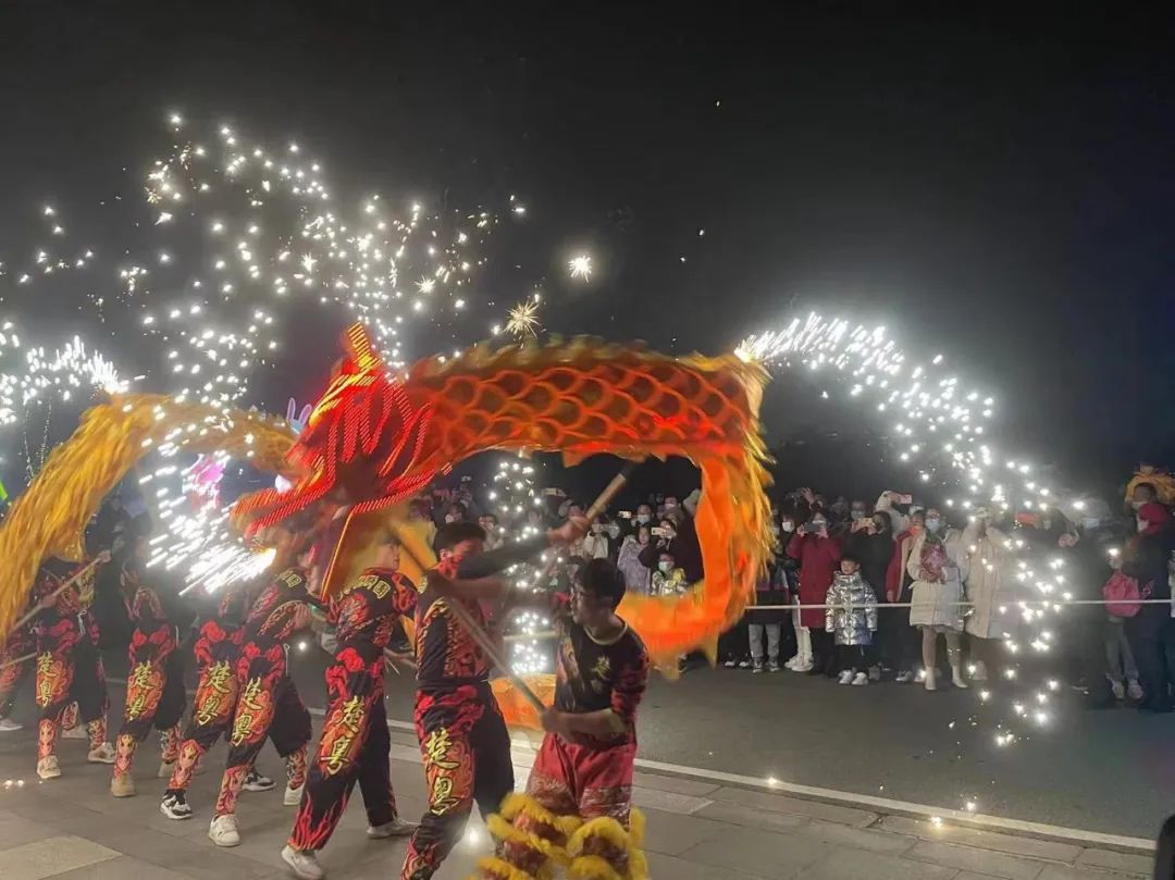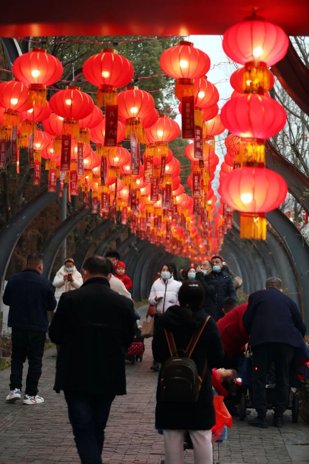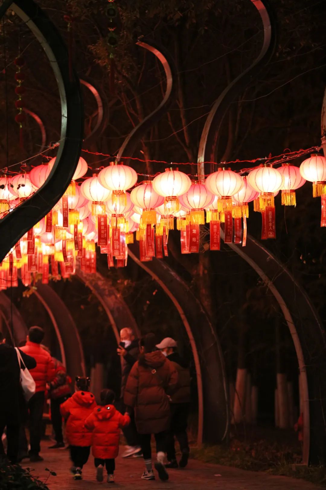 夜幕降临,园内至长江文明馆沿线灯谜长廊闪亮,夜光龙狮舞动、东内广场“唐宫夜宴”杂技火舞汉唐舞轮番上演、500架无人机每天两场不重复直到20:00。