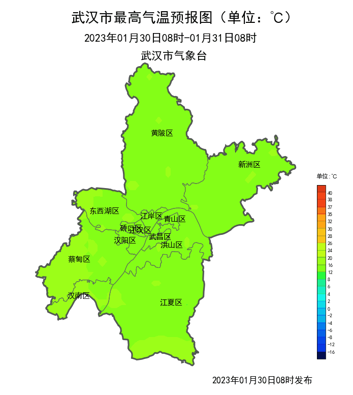 预计1月30日到31日受高空西北气流控制湖北省内大部地区天气晴好白天气温继续攀升但昼夜温差大以省会武汉为例31日最低气温仅1℃最高气温有21℃