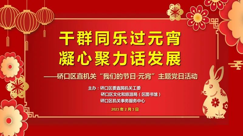欢聚一堂庆元宵,共话发展强信心。2月3日,硚口区举办区直机关“我们的节日·元宵节”主题活动,组织机关党员和干部群众一同继传统、猜灯谜、吃汤圆、话发展,弘扬中华优秀传统文化,营造良好的书香文化和欢乐祥和的节日氛围,增强党员干部凝聚力和向心力,激发奋进新征程的昂扬斗志。