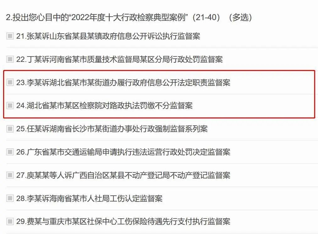 近日,由最高人民检察院第七检察厅(行政检察厅)与中国法学会行政法学研究会共同组织的“2022年度十大行政检察典型案例”评选活动,进入公众投票环节啦!