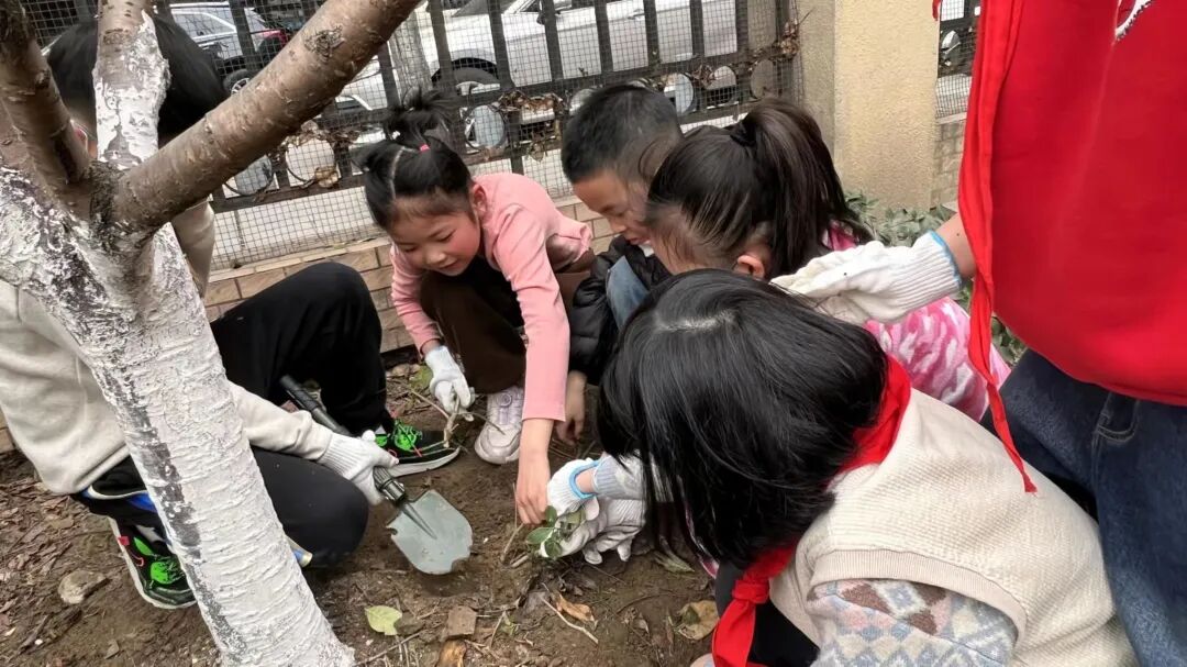 春风和煦,草木勃发。3月3日,行知小学开展学雷锋志愿服务亲子植树活动。队员们带着劳动工具和家长们一起,铁锨在握,锄头在手,挖坑、抬苗、栽植、培土、浇水……经过一个多小时的辛勤劳动,一株株桂花树苗在行知小区迎风挺立。种完树后,大小志愿者们仔细捡拾花坛里的纸屑,倒进了垃圾桶。拾起的是垃圾,绽放的是美德,活动虽已结束,但文明的种子将在队员们心中生根发芽,“吃苦耐劳、无私奉献”的雷锋精神将伴随队员们成长。