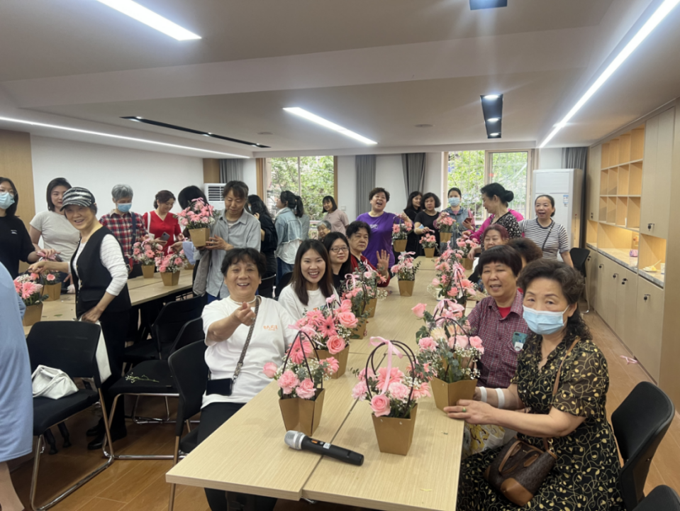 4月18日上午,荣华街道集贤里社区联合荣华街道社工站、新时代文明实践站、婉婷花艺在社区二楼大会议室共同举办爱在集贤“巧手花开,共“卉”美好”为主题的暖春DIY插花活动。在花艺老师的指导下,大家充分发挥自己的想象,用灵巧的双手,将百合、玫瑰、康乃馨、桔梗等多种花材,根据颜色的搭配、花枝的长短,精工裁剪,再配以尤加利叶点缀,一盆盆独具匠心、娇艳欲滴的插花作品在大家手中诞生。