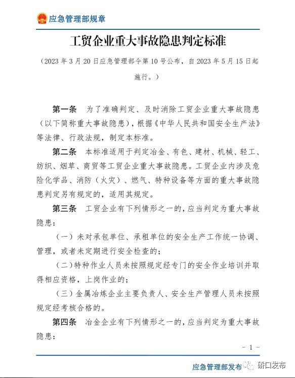 究竟什么是重大隐患? 标准答案是什么?对照应急部《工贸企业重大事故隐患判定标准》64项重大事故隐患情形,硚口区应急管理结合辖区企业生产经营情况,梳理出工贸企业通用重大事故隐患判定情形,要求工贸企业对照排查内容进行排查,让企业知道是什么、怎么做,方便企业照单排查、照单整改。