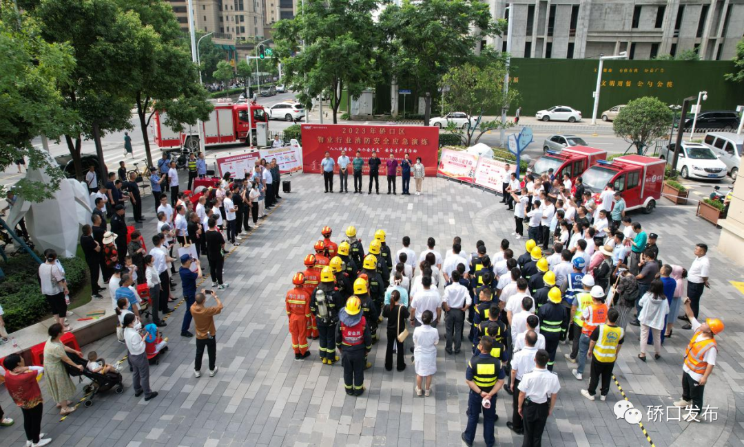 今年6月是我国第22个全国安全生产月,为进一步提高消防安全意识,增强辖区内各物业单位安防处理突发火灾的能力,6月20日上午,区房管局、区消防救援大队及武汉市物业管理协会硚口工作委员会在华润翡翠城小区联合举办了2023年硚口区物业行业消防安全应急演练活动。