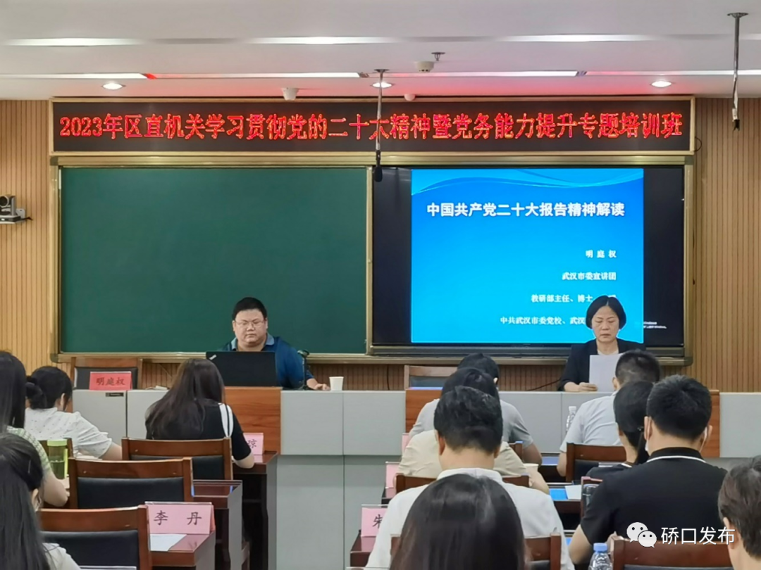 为落实《硚口区2023年度党员教育培训工作计划》要求,全面加强区直机关党务干部队伍建设,以实现政治功能强、队伍建设强、服务中心强、制度落实强、纪律作风强的“五强”党支部建设为重点,不断提高党务干部业务水平和履职能力。6月26日至28日,硚口区委直属机关工委在区委党校举办区直机关学习贯彻党的二十大精神暨党务能力提升专题培训班,区直机关党务干部参加培训。