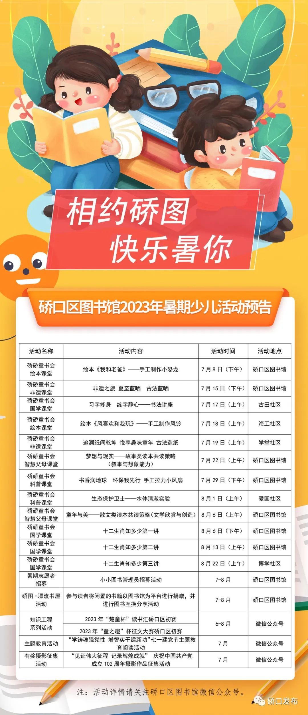注:具体活动时间及参与方式请关注硚口区图书馆公众微信号。