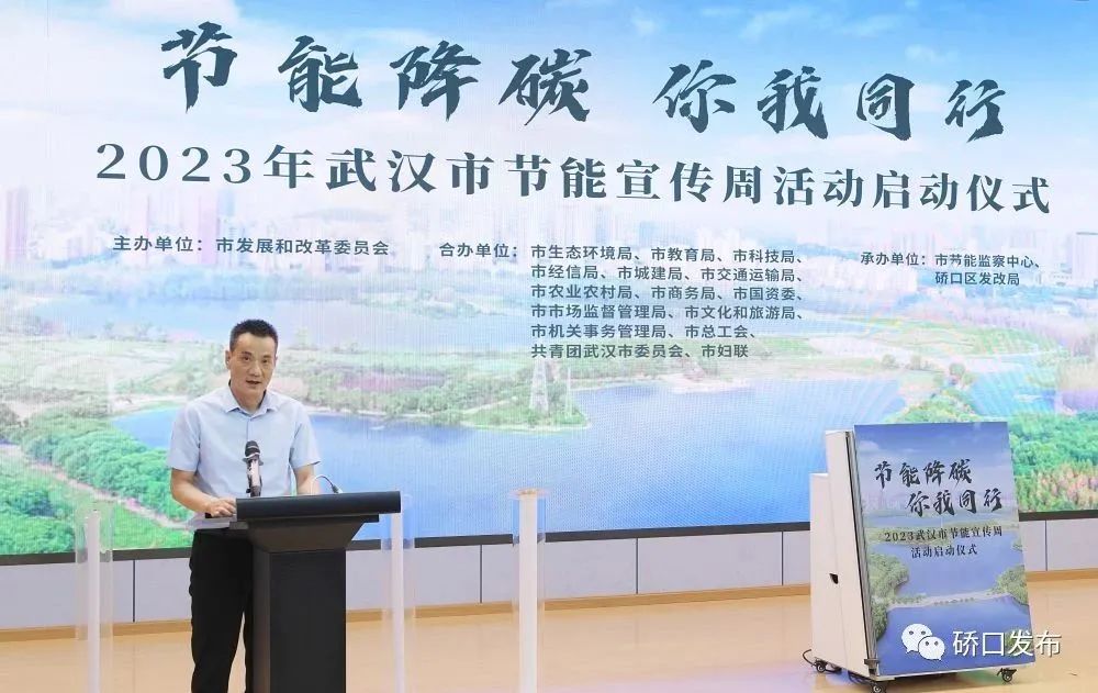 此次活动由市发改委主办,市节能中心、硚口区发改局承办。市发改委党组成员、副主任王永胜,硚口区委常委、常务副区长赵宏亮出席启动式并致辞。湖北碳排放交易中心、三峡电能有限公司、硚口区水厂路小学分别介绍了湖北碳市场、城市绿色综合能源管家以及低碳校园的建设经验。全市16个市直部门、各区发改局、硚口区相关区直部门及街道领导参加了活动。