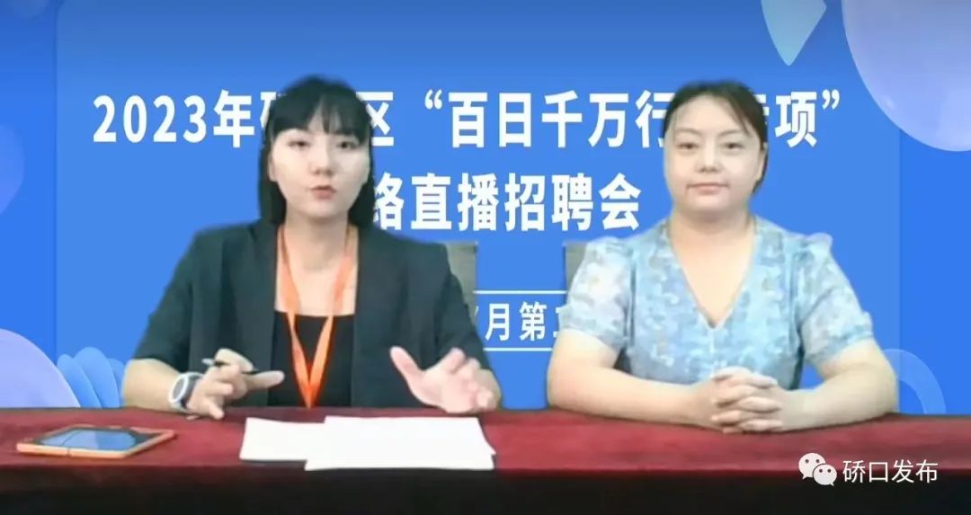 为贯彻落实党中央、国务院关于促进就业工作决策部署,强化就业服务,畅通求职招聘渠道,促进人岗精准匹配,2023年7月20号上午,硚口区人力资源局、湖北中部就业超市管理有限公司联合举办2023年第二期“百日千万行动专项”网络直播招聘会。