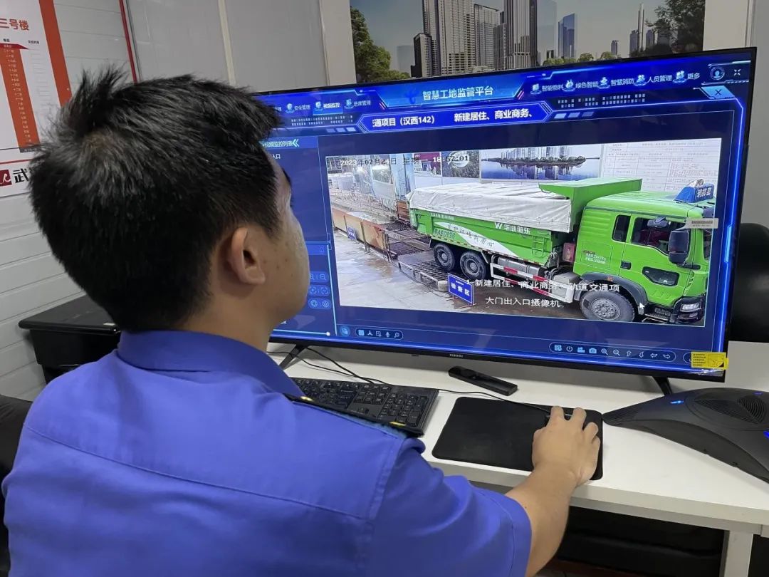 工地最大的亮点是,充分运用网络监控手段,24小时监测出门车辆冲洗质量,配备了两套与城管执法部门联网的、具备影音功能的视频监控设施,分别接入武汉城管执法总队、硚口区城管执法大队平台,接受双平台远程监督,平台一旦发现违规出土车辆,可立即叫停要求整改。