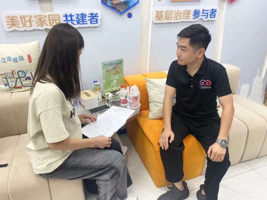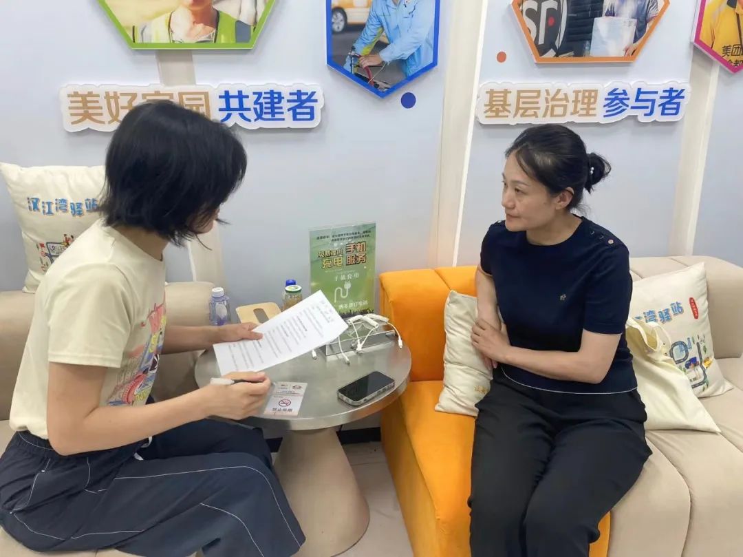 随后,学子们围绕硚口区基层社区共同缔造工作,现场采访了古田街道罗家墩社区和易家街道宜美社区多名工作人员,面对面了解掌握了基层治理中运用共同缔造的实际案例。在与新业态新就业群体代表武汉三只羊汽车服务有限公司负责人的交谈中,学子们对践行“五共”理念探索基层治理体系创新有了更为全面的认识。访谈最后,学子们还实地参观了汉江湾驿站党群服务中心,向前来参加观影活动的居民群众和网约车司机发放了实践活动调查问卷。