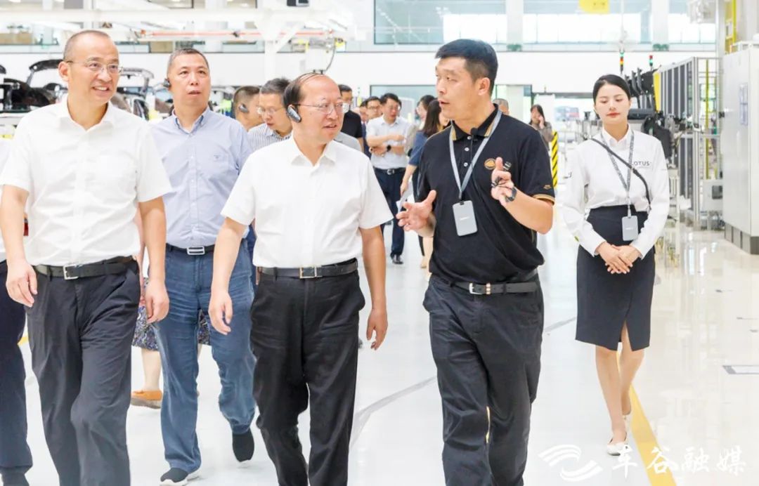 路特斯全球智能工厂是全球首家全工序采用数字孪生技术规划建设的汽车制造工厂,去年竣工投产,可实现“千车千面、为一人造一车”。首款纯电超跑Eletre热销海内外,今年产值有望过百亿元。在路特斯全球智能工厂,区党政代表团参观总装车间,详细了解工厂生产运行情况,点赞企业良好发展态势。