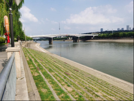 政府投入资金对硚口几处险工险段进行整修。图为修砌的堤防护坡