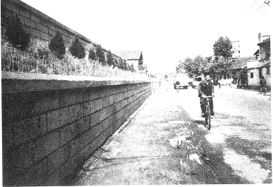第四段是硚口以下堤段,原先也无堤防,1941年日伪统治时期,虽曾在沿河修筑了3700米的块石驳岸墙,但墙基多筑于煤渣、垃圾堆上,基质较差,堤身多处出现断裂,难以抵挡大洪水的侵袭,因此1954年大汛时,政府不得不放弃它而在汉正街抢修了二线土堤,以确保城区安全。汛后,拆堤恢复街面。翌年,即修建了沿河防水墙。