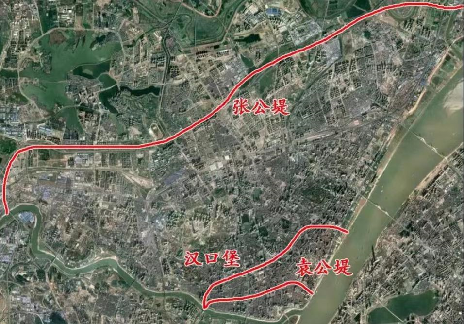 一段由舵落口至崔家墩土堤,1915年因国民政府拟建川汉铁路将其列为汉江干堤,由官方投资培修。