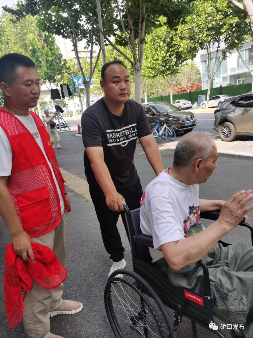 得知消息后,社区书记和网格员立刻前往事发地点,就近从辖区单位首佳耳鼻喉医院借来一辆轮椅,并通过网格信息迅速联系上老人的家人。因为家属也行动不便,社区工作人员合力将老人扶上五楼,安全送回其家中。